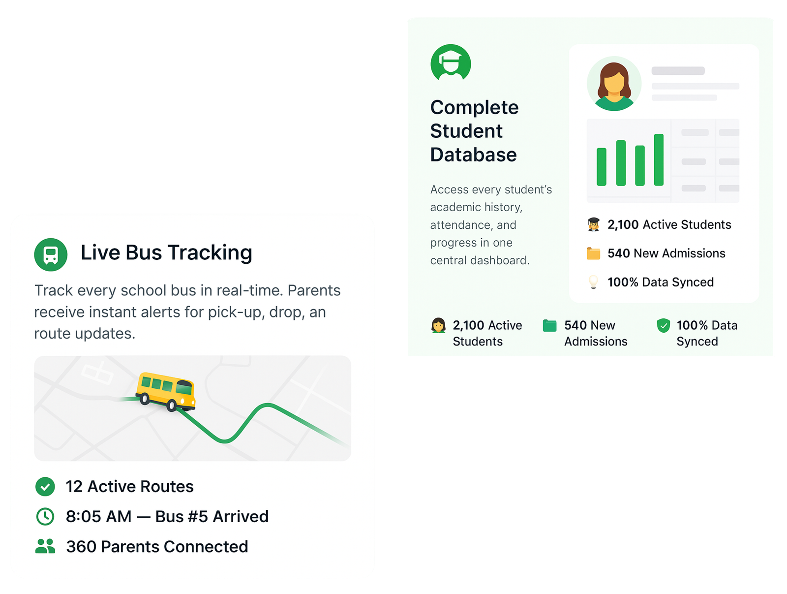 A unified digital suite designed to simplify management, strengthen communication, and enhance learning outcomes.